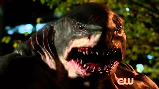 "Then King Shark shows up at the 'West' house and attacks 'Joe' (Jesse L. Martin), 'Iris' (Candice Patton), 'Wally' (Keiynan Lonsdale) and 'Barry'..."